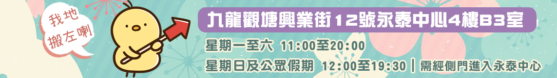 地址: 九龍觀塘興業街12號永泰中心4樓B3室 (鄰近觀塘港鐵站,從B1出口沿開源道直行只需約6分鐘左轉入興業街便到)